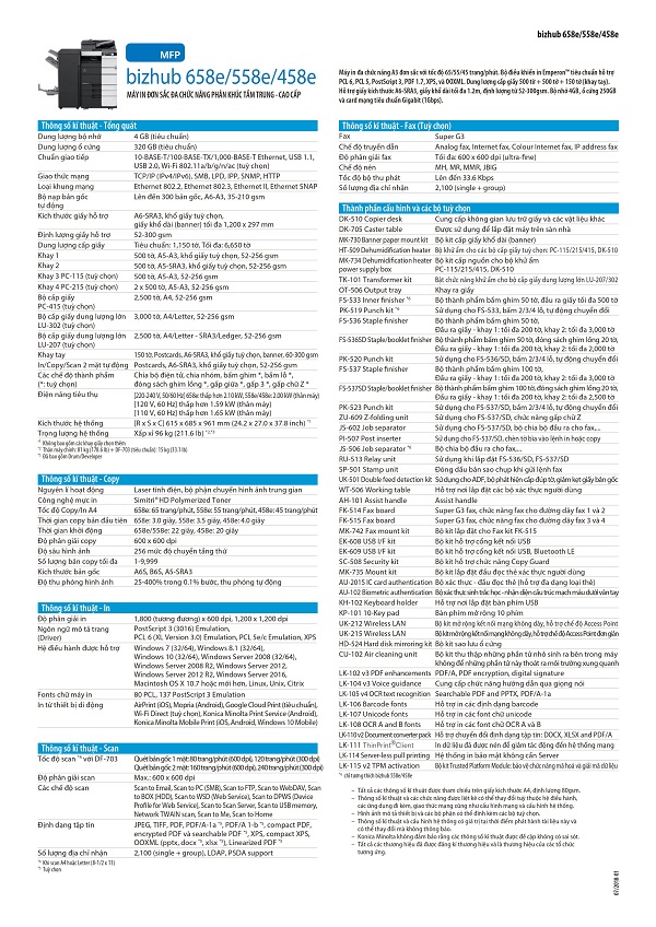 - bizhub 658e/558e/458e: 65/55/45 trang/phút